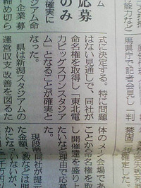 当サイトのBBSでも大変話題になっていたことであるが、新潟スタジアムの命名権の買取先が決まりそうである。