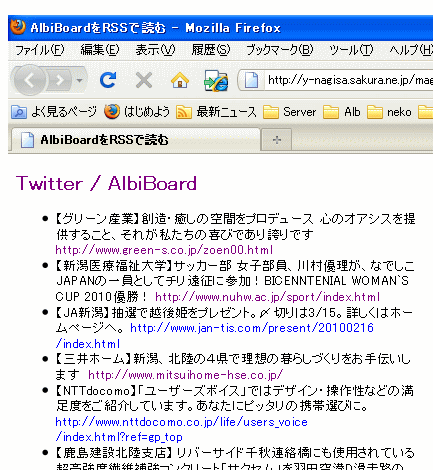 twitterのRSS配信は20件までとなっているようなので、これで常に最新20件を呼び出せることになる。