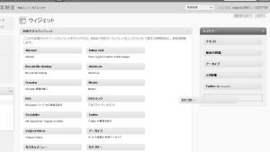 ウィジェットの設定画面になりますが、中央に利用可能なウィジェットの一覧が示され、一番右の列には現在自分が利用中の「テーマ」で使われているサイドバーの一覧があります。使いたいウィジェットを、表示したいサイドバーのところにドラッグ&ドロップで移してやればOK。