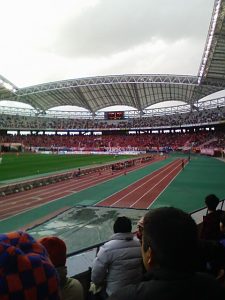 そんなこんなで最終戦前夜にようやく「ラブラブリシャルデス・Tシャツ」が出来上がり、当日午前中に「ラブラブリシャルデス・小旗」を増産wしてスタジアム入り。いつものメイン2階ではマルシオから遠すぎるので、バックスタンドの指定を買って、前から4列目で観戦しました。