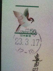 はがきの消印は、「小牛田 23.3.17 12-18」
