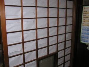 あれから15年、この障子だけはずっとそのままにしてあったのだが、このたびようやく貼り換えることになった。