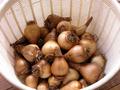 小タマネギではありません。スイセンの球根。 初夏に掘り上げて、軒下に吊しておいたもの。保存前にちゃんとベンレートで消毒もしたので、元気に秋を迎えた。 5?6年前に植えてから植えっぱなしにしておいたんだけど、だんだん混み合 … 続きを読む