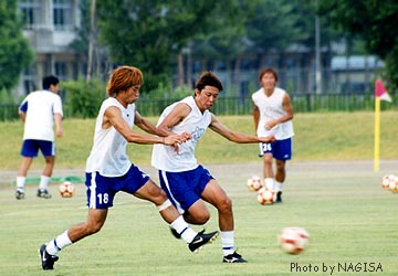![]() 紅白戦での秋葉キャプテン 右後ろには練習生が見えます。