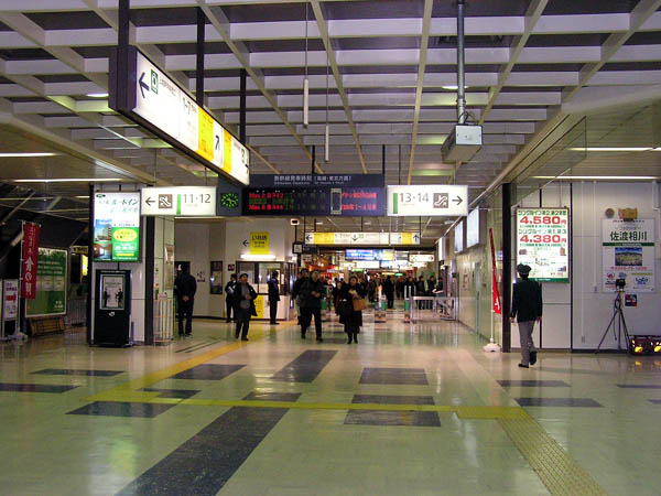 家に戻って再び新潟駅に電話する。長岡−越後湯沢間に点検用の電車を走らせているらしく、それが完了し次第運転再開になるらしい。それなら駅まで行って待機していれば何とかなるだろう。あわただしくタクシーを呼んで駅に向かった。不思議なことに、白根は電気が復旧しているのに、ふるさと村あたりまで来たら停電したまま。信号機も消えている。バイバスから弁天インターで降りると、その辺りも部分的に停電してる状態だった。